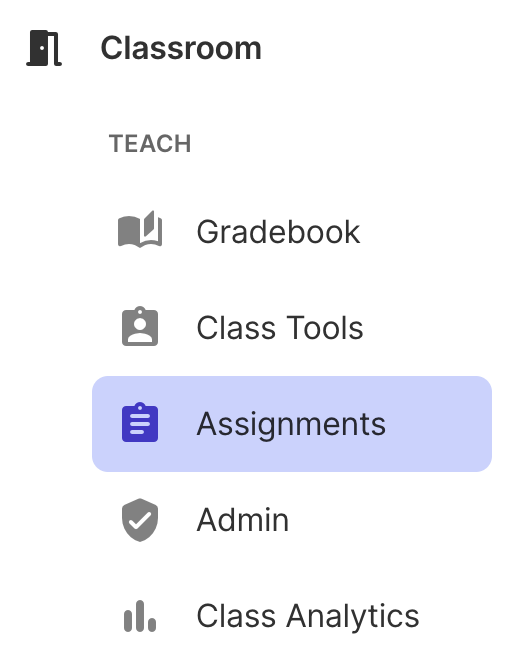 Explore your Units and Assignments by selecting the Assignments item in the Classroom menu.