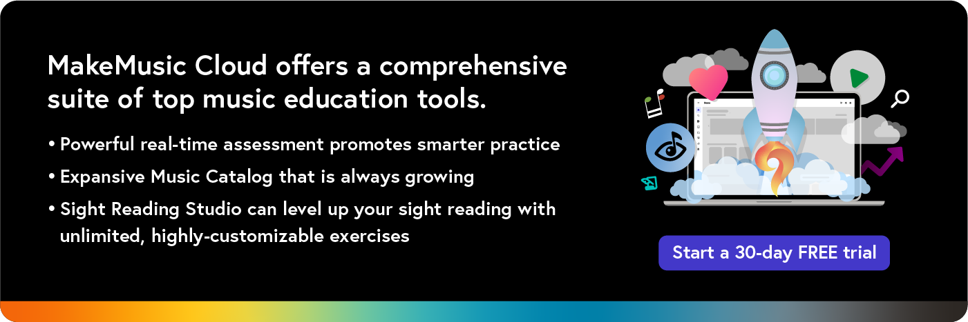 Scale patterns are great tools to help horn students develop their pitch skills. When patterns are present, it is easier to know if you are correct or incorrect. Also playing songs that you know is key, since, again, you can tell if you are correct or incorrect. Sing or buzz songs even without playing them on the horn so that you have the freedom to focus on the sound and the musicality of the tune. I encourage young horn players to seek out music to songs they know and love, use the MakeMusic Cloud first pitch tool so they can hear the starting note and match it before they begin, and have a great time developing their ear and playing skills while playing songs they love!