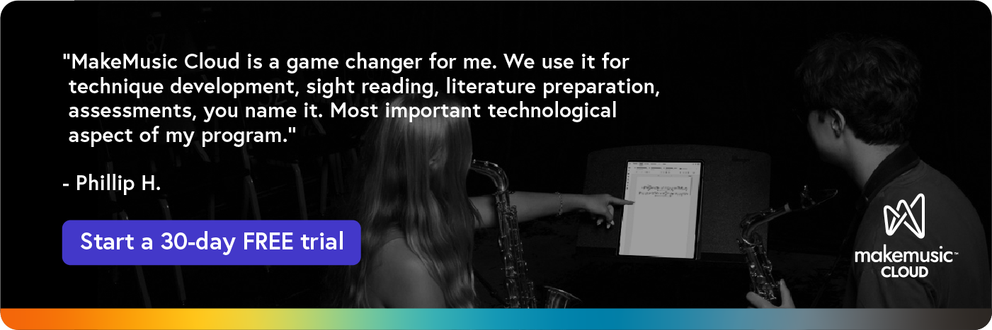 Another option is to pick a few potential spring concert or festival pieces for students to select from. Assign them in MakeMusic Cloud, and set up a digital survey that allows students to indicate which piece or pieces they would most like to play. Giving students the power to choose can really impact their level of commitment and help motivate their practice. You can easily find music from your state’s required contest list using our State Lists tool.