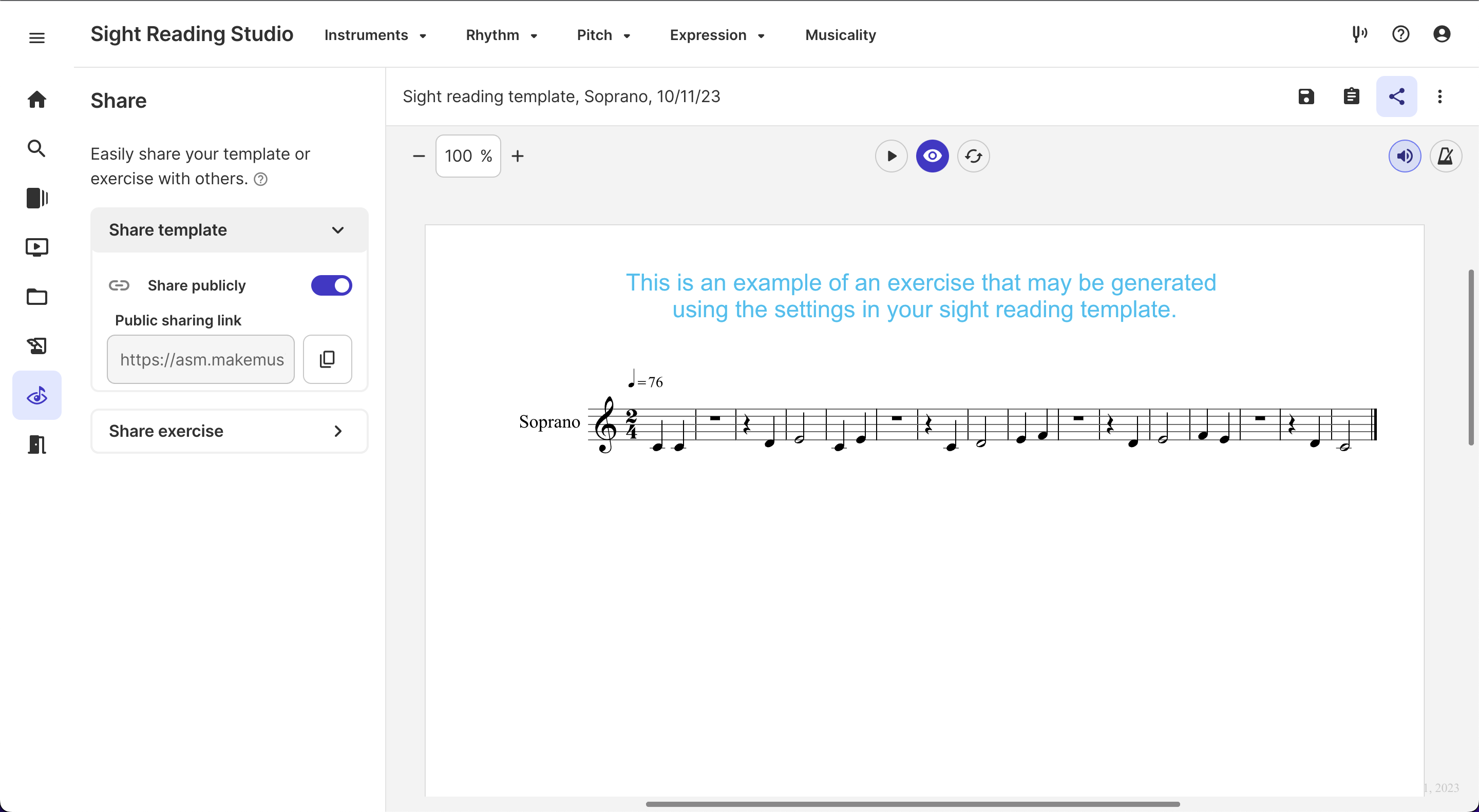 When you share your music, you will be able to send either a template or an exercise (see tip #2 for more information on the difference) to anyone via a shareable public link.